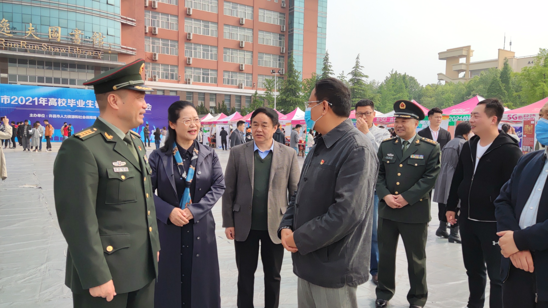 许昌市军分区司令员李选才、许昌学院副院长潘春彩、许昌市人力资源和社会保障局二级调研员梅成亭等领导亲临招聘会现场,详细了解招聘会情况,与用人单位沟通交流,征询用人单位对学校专业建设、课程设置、人才培养等方面的建议和意见,要求相关单位要进一步了解用人单位需求,共同做好我市校毕业生的推介工作,引导学生实现高质量就业。同时此次招聘会,也对学校大学生征兵工作起到了积极推动作用。