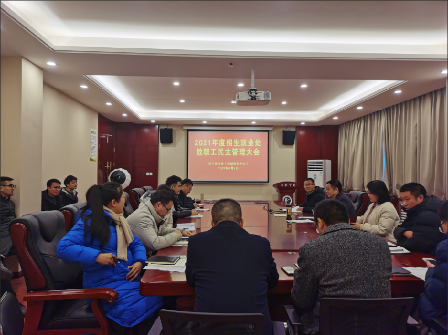 1月2日上午,我处在会议室召开2021年度民主管理大会。招生就业处直属党支部书记、处长张永祥等领导以及全体教职工参加了会议,会议由陈书崇副处长主持。